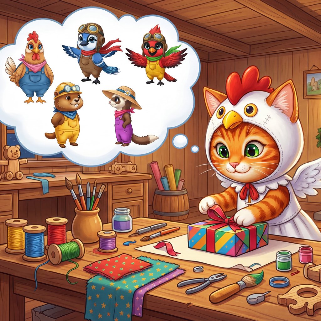 a curious cat with a chicken disguise and a heart full of courage. She explores the world one lesson at a time, showing children that kindness, honesty, and being true to yourself can turn any challenge into a moment of growth.